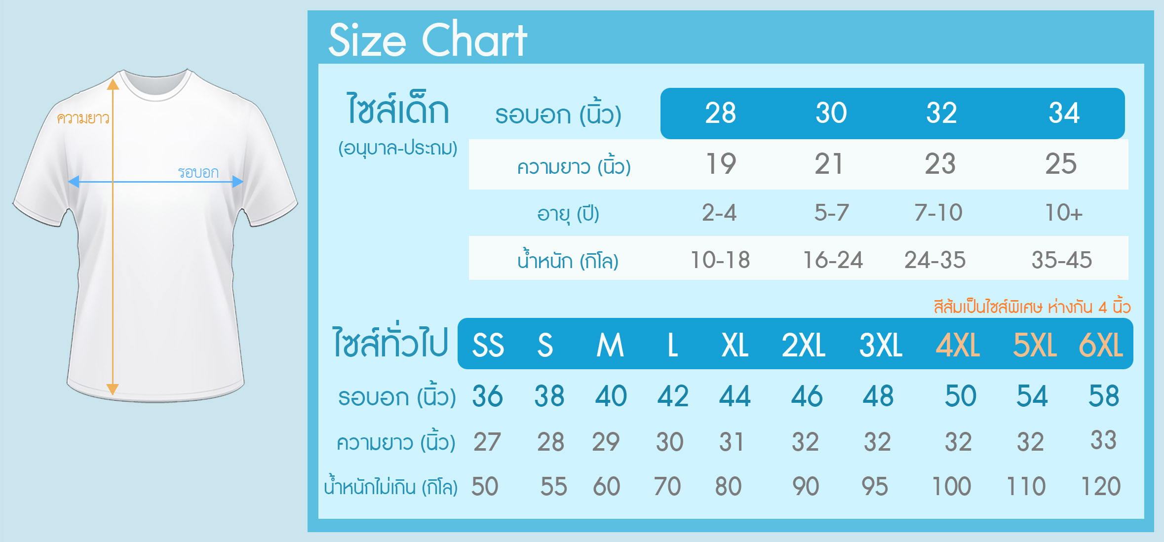 *หรือ ลูกค้าสามารถกำหนดรอบอกแต่ละไซส์ได้ครับ