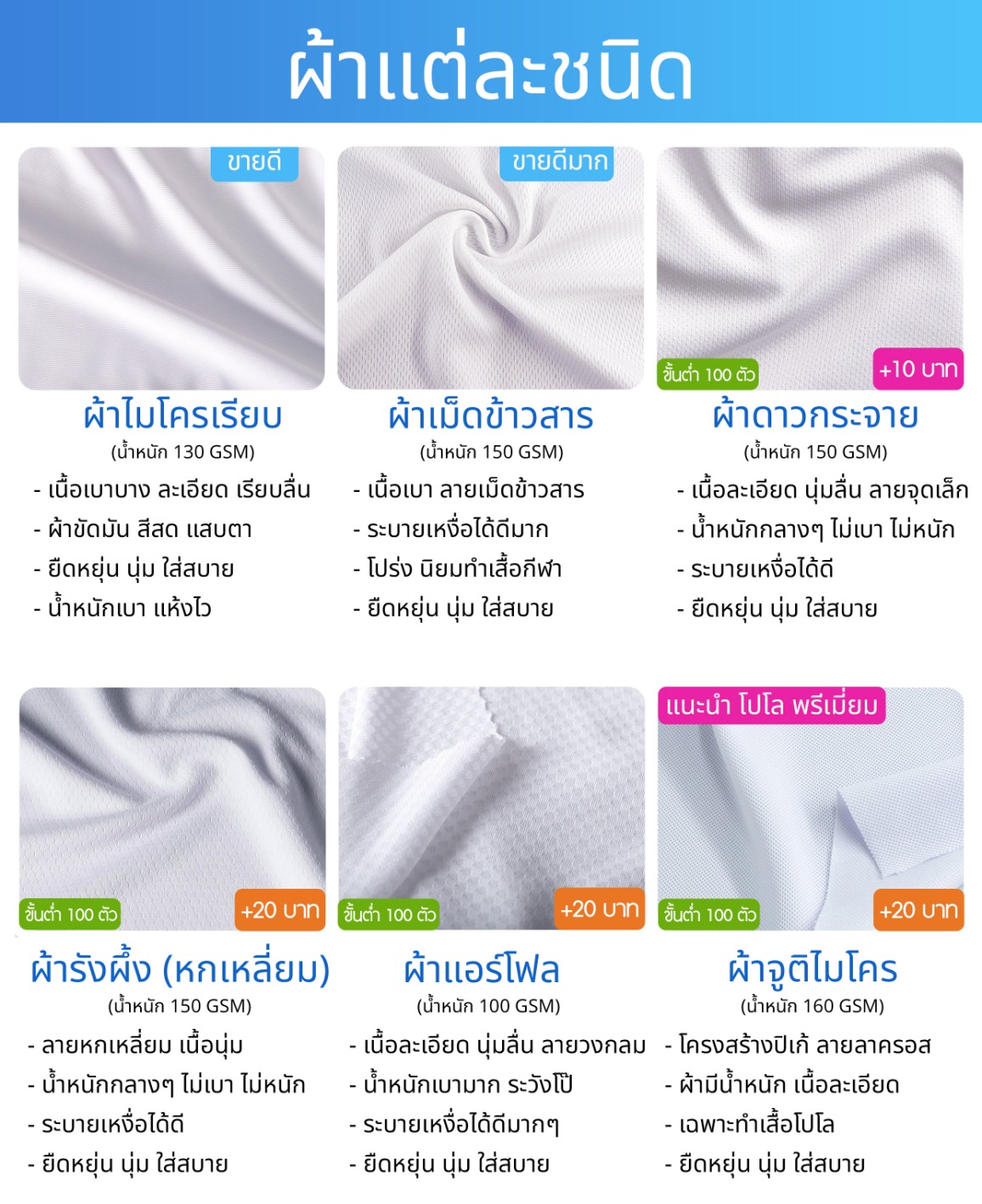 - ออกแบบใส่โลโก้ พิมพ์ลายได้ทั้งตัว หน้า-หลัง-แขน-คอ